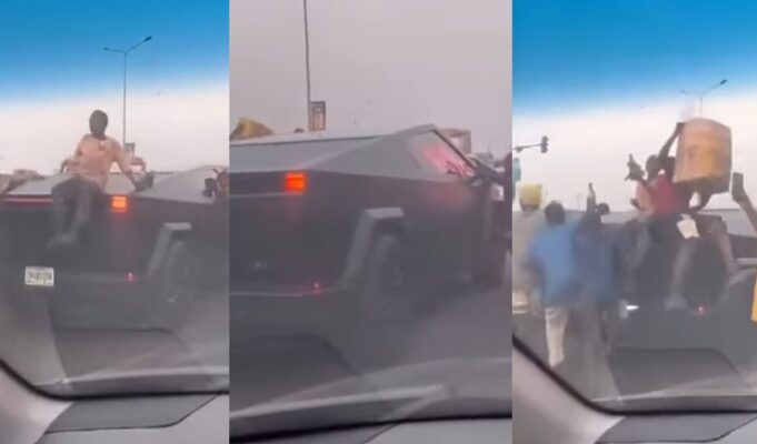 “This is why people drive with kob0ko” – Tongue w@gs as street hawkers hover around a Cyber truck in...