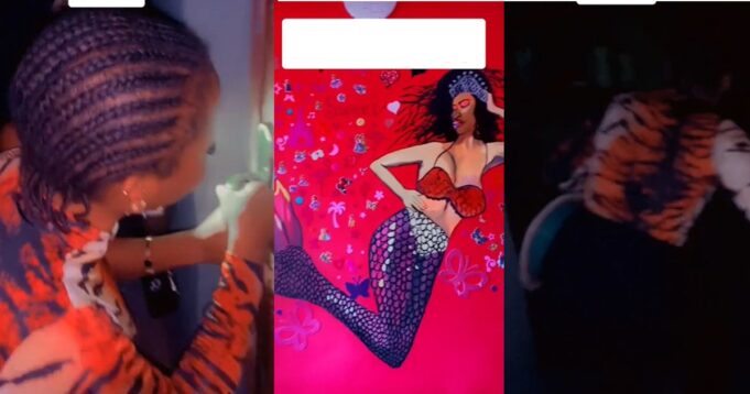 In a viral clip that surfaced online, some ladies took to their heels after seeing a mermaid on the wall in their friend’s room. The ladies had planned to pass the night in their friend’s house couldn’t enter the room after seeing the drawing.