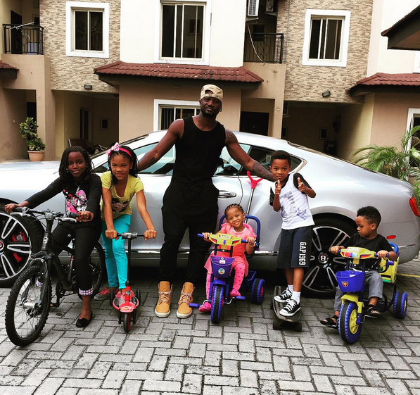 Other half of the P-Square duo, Peter Okoye is seen here in this adorable photo of himself chilling with his children and his nephew and his Children’s friends.