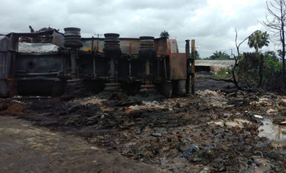 A tanker laden with petrol, overturned and exploded around Eliozu Bridge on G. U. Ake road, Obio-Akpor Local Government area of Port Harcourt, Rivers State on Thursday, August 30th.