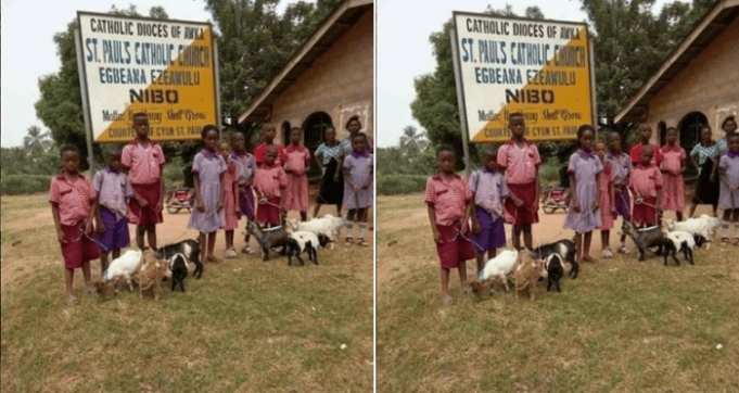 Some pupils of a yet to be identified school in Anambra State, were handed goats as reward for coming first in their respective classes.