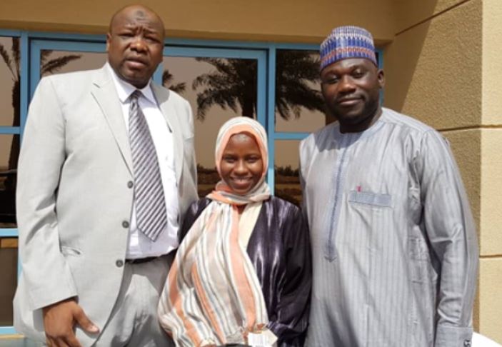 Zainab Aliyu is pictured below with officials of the Nigerian Consulate in Jeddah, shortly after her release from detention in Saudi Arabia.
