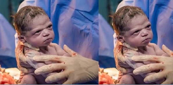 The newborn was not in the mood though, as she appeared to stare angrily at the doctor, and she has become a meme for that.