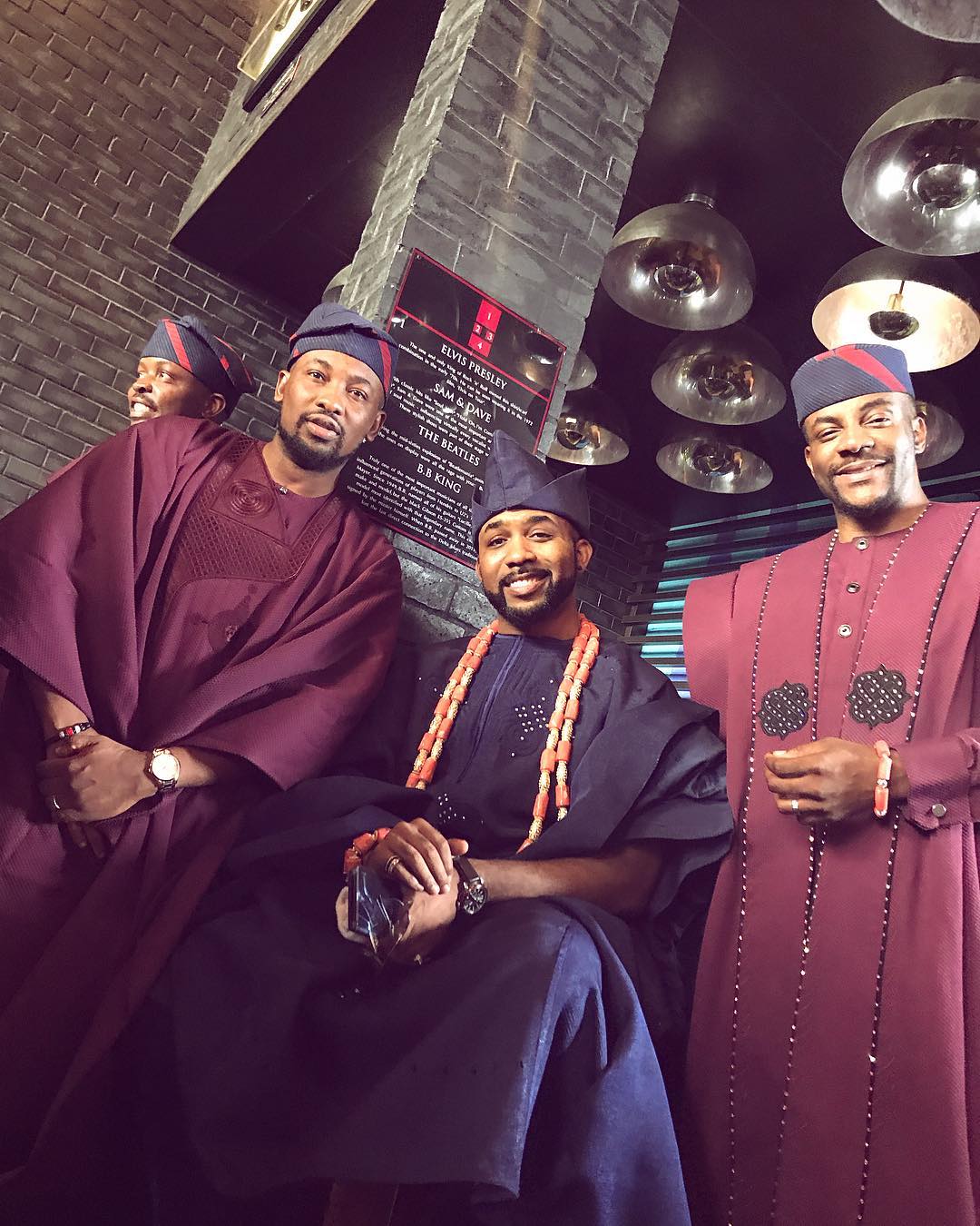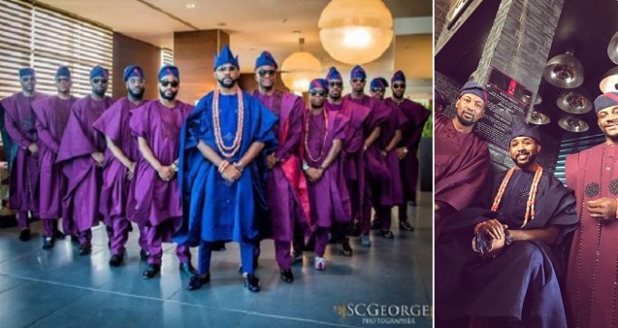 It’s certainly a glorious occasion as Nigerian singer, Banky W and his groomsmen stepped out for his traditional wedding taking place in Victoria Island, Lagos this afternoon.