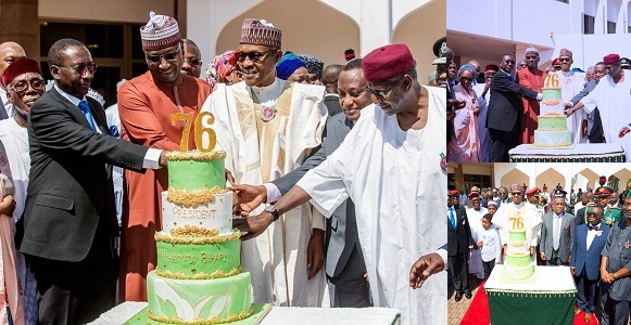 President Muhammadu Buhari turned 76 yesterday, December 17th, and his aides and a few state governors treated him to a surprise birthday get-together at the state house in Abuja.