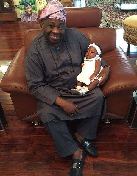 Dele Momodu shared a picture with the baby girl today, October 2nd and captioned the picture: “God bless my cousin’s very cute baby…”
