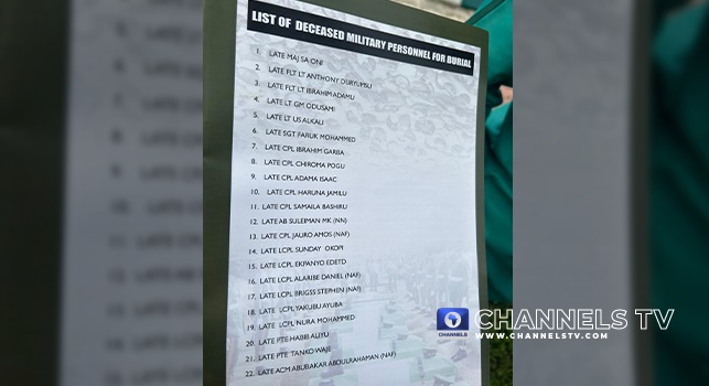 The funeral proceedings was attended by the wives of the deceased soldiers, family members, and government officials, including the Minister of Defence, Abubakar Badaru, the State counterpart Bello Matawalle, and the Chief of Defence Staff, Gen. Christopher Musa.