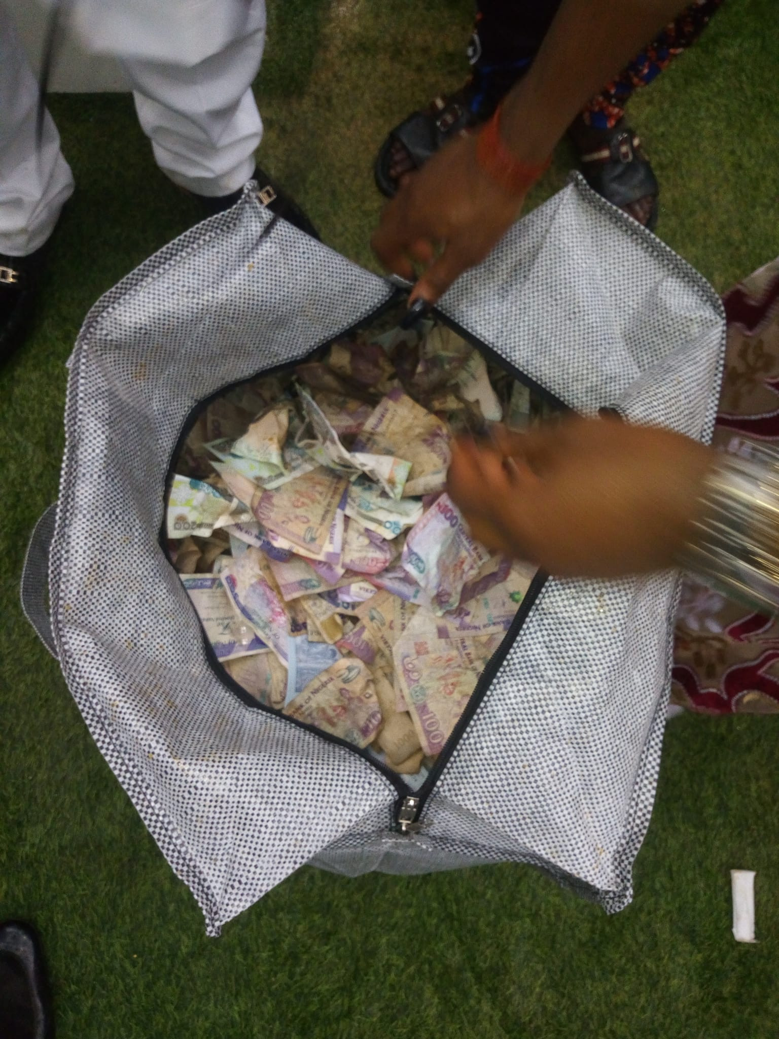 Among the gift items are a bag filled with cash, a bed frame with a mattress in it, wardrobe, standing mirror, refrigerator, gas cylinder and a couple of other items.