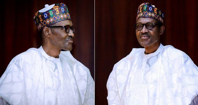 The president can be seen in the photos looking full fleshed as he wore bright smiles while donning his ever radiant traditional attire.