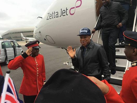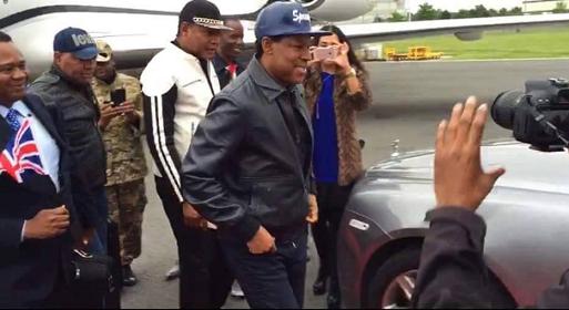Founding president of Believers’ Loveworld Incorporated aka “Christ Embassy,” Chris Oyakhilome full of smiles as he is being received at the airport as he arrives London in his private jet for a church activity at the London branch of his church.