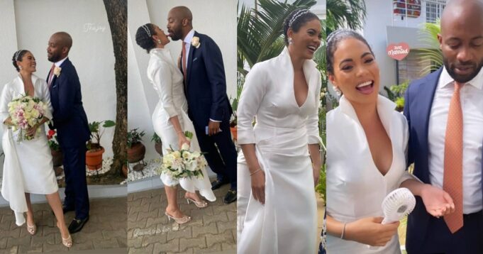 The lovely new couple exchanged their vows at the Ikoyi registry in the presence of their family and friends. Nenesi wore bright smiles and was clearly elated to be starting a new chapter with the man whom she revealed she’s glad she answered his invitation to a Sunday brunch two weeks before the global pandemic.