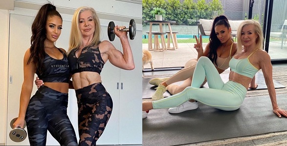 Sexagenarian, Lesley Maxwell and her teenage granddaughter, Tia Christofi joined forces to demonstrate a killer workout routine while wowing fans with snaps where they flaunted their banging bodies.