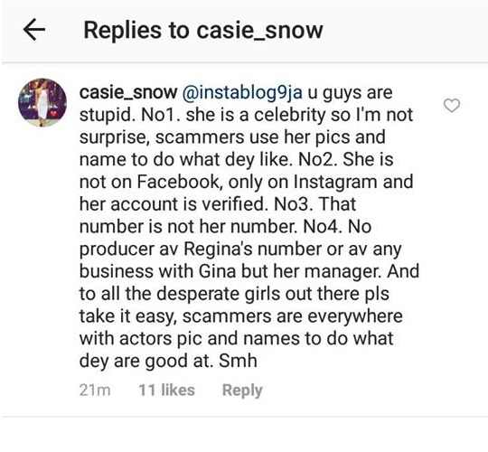 All this is new to me… have never heard of Amanda chisom before… so Biko oooo it’s not Regina thank you. Besides why will a young girl send out nude pictures…. ???”