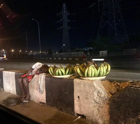 About two days ago, the news of a lad hawking plantain in the middle of night went viral online after he was photoed sleeping in the streets with his plantains.