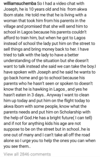 Former child actor, Williams Uchemba, was among those who rallied around to find and help the child – Williams, who is in Los Angeles had a video call with the boy and promised to offer assistance.