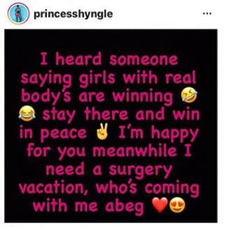 “Pretty girls with natural bodies and regular jobs are still winning. Don’t let social media fool you”, she was quoted saying on her Instagram.
