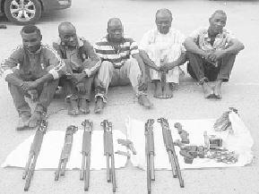 Six automatic pump action rifles, a pistol and some cartridges were recovered from the suspects.