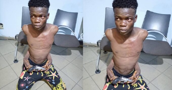 A man identified as Peter Arinola has been arrested by police operatives attached to Surulere Division of the Lagos state police command at the Empire Area in Surulere for using an English Pistol to threaten a prostitute while negotiating and harassing her for sex.