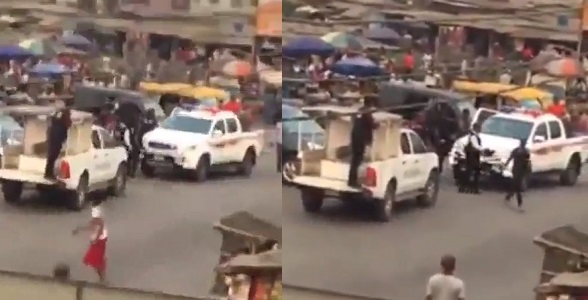 The policemen attached to the Nigeria Police special squad ‘Operation Puff Adder’ who stormed the scene in patrol vans, arrested the bribe-taking officers at Ijesha area of Lagos state.