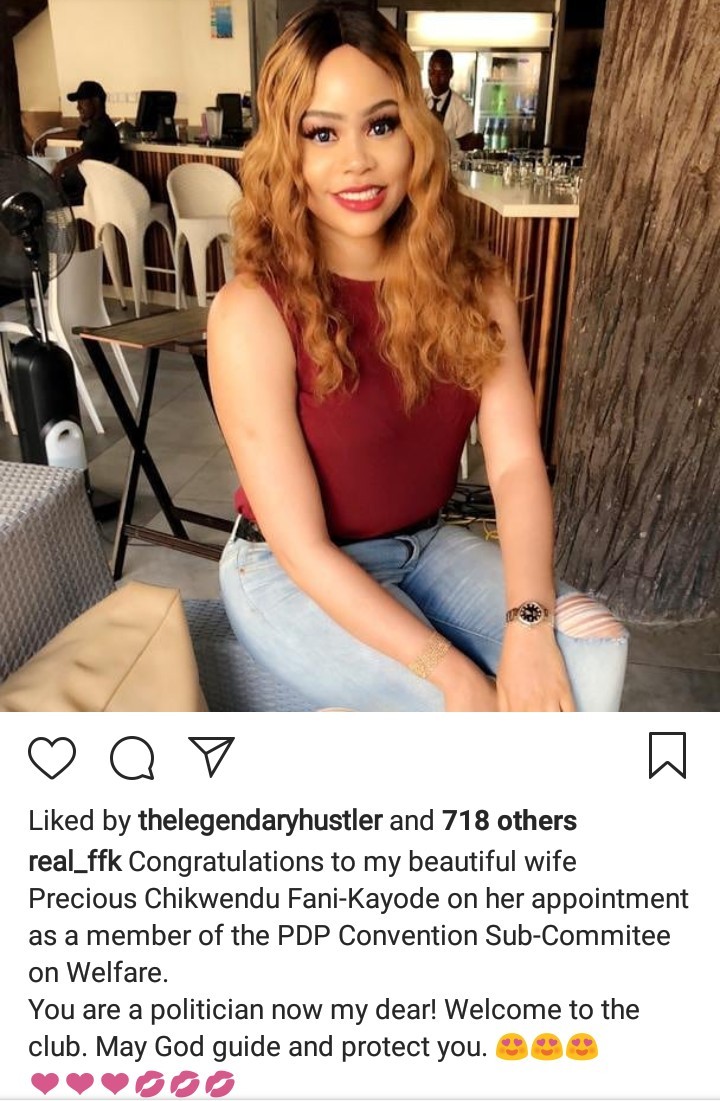 Former Aviation minister, Femi Fani-Kayode has disclosed that his wife, Precious Chikwendu has been appointed as a member of the PDP Convention Sub-Committee on Welfare.
