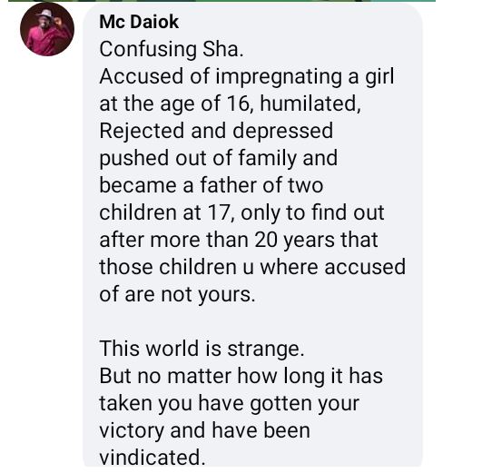Calabar On-Air Personality, Kanedrick Kingsley Agwu popularly known as Fada Kane, has discovered that his two children are not biologically his after over 20 years.