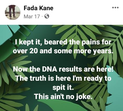 The media personality took to Facebook to make this disclosure today, March 25, and shared photos of the DNA test result and court affidavit confirming that he is indeed not the biological father of the children birthed by his ex-girlfriend, MaryAnn Efa.