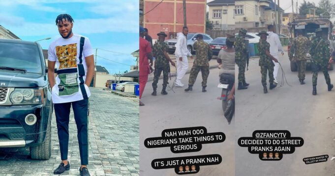 A new video that’s currently serving rounds online, shows the moment popular Nigerian prankster, ZFancy got whisked away by military men.