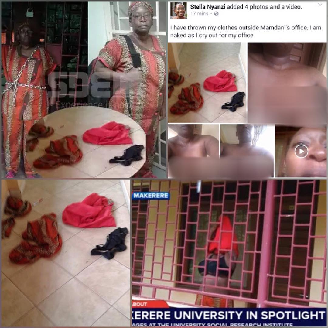 According to Nyanzi, her boss Mamhood Mamdani wanted her to teach at the university when she was only contracted to do research works. “I have thrown my clothes outside Prof. Mamdani’s office. I am naked as I cry out for my office,” she said on Facebook where she posted the video.