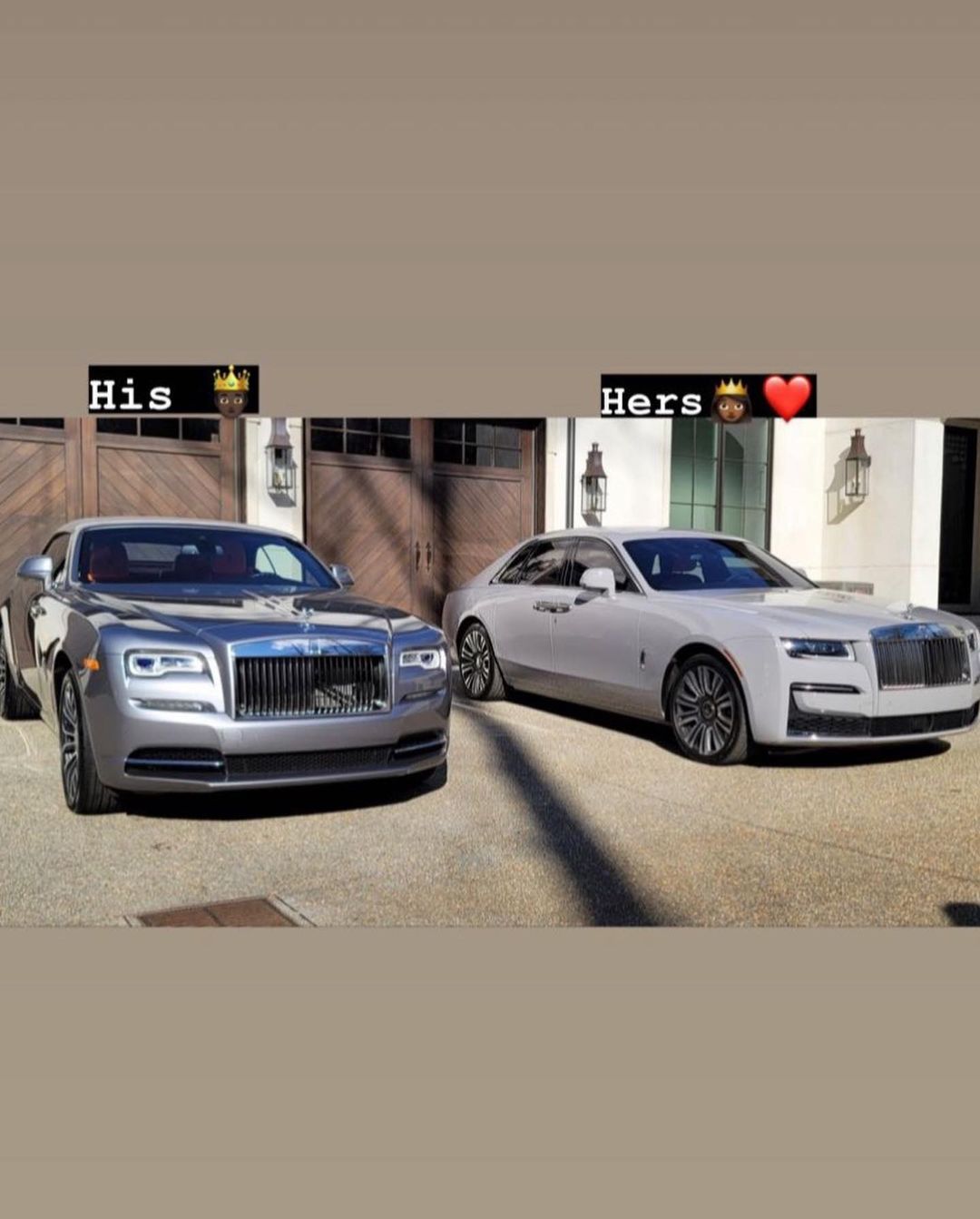 Simon also took to his Instagram page to share photos of the ride, including a photo of Porsha’s new ride sitting pretty beside his own Rolls-Royce.