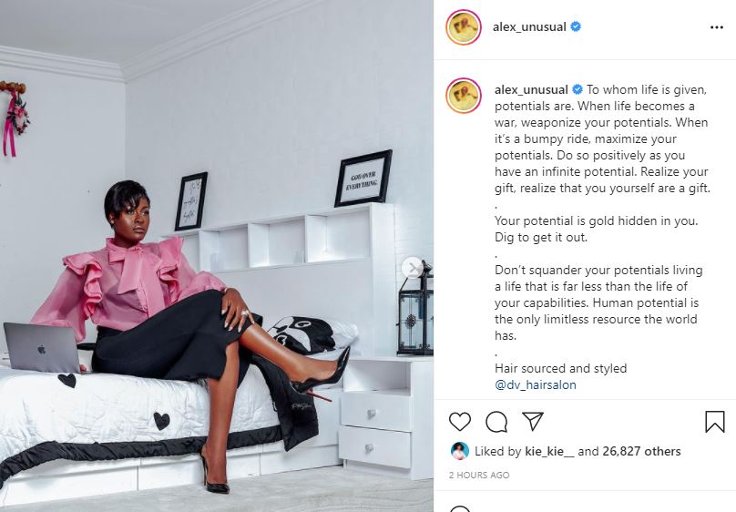 Reality TV star, Alex Asogwa also known as Alex Unusual, has shared an amazing motivational piece about humans’ potentials.