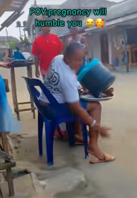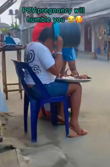 A pregnant woman’s unconventional method of consuming ‘garri’ locally known as cassava flakes has sparked a relatable conversation about the humbling effects of pregnancy.