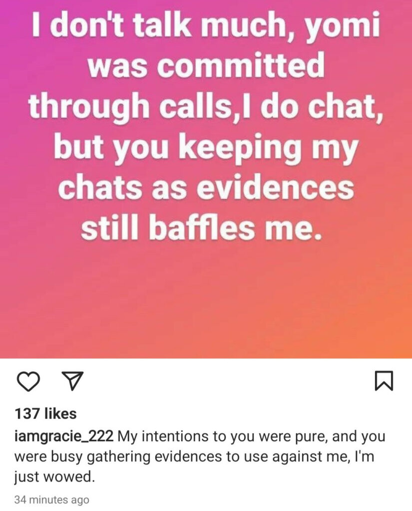 Nollywood actress, Grace Amarachi has fired back at her baby daddy, actor Yomi Fabiyi, after he countered her allegations against him.