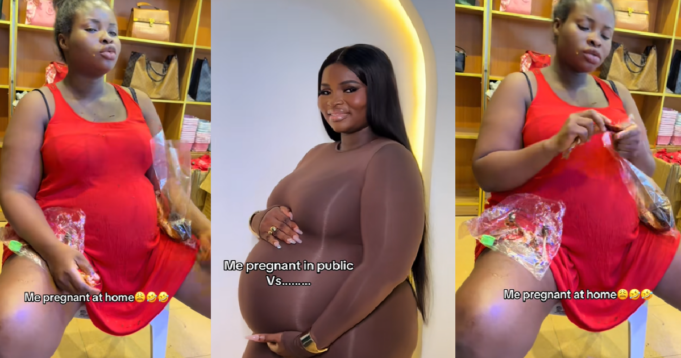 A pregnant lady shares how she portrays herself in public versus how she truly is when she’s comfortable in her home, now that she’s pregnant.