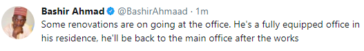 Personal Assistant to President Buhari on New Media, Bashir Ahmad, has given an explanation as to why the President is working from home. See Below;