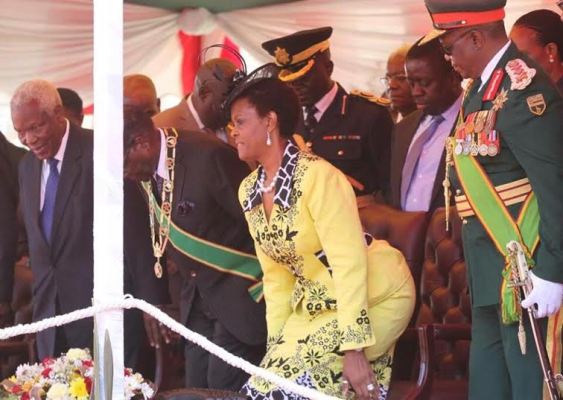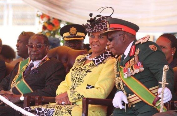 According to reports, President of Zimbabwe, Robert Mugabe reportedly fired his Chief of Defense Forces (Pictured above – sitting near his wife) for allegedly being too free around his wife, Grace Mugabe and also staring at her butt when she bent down (Pictured Below).