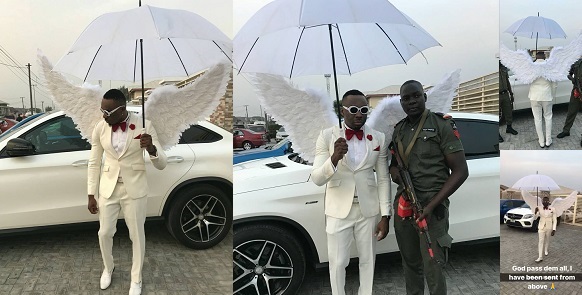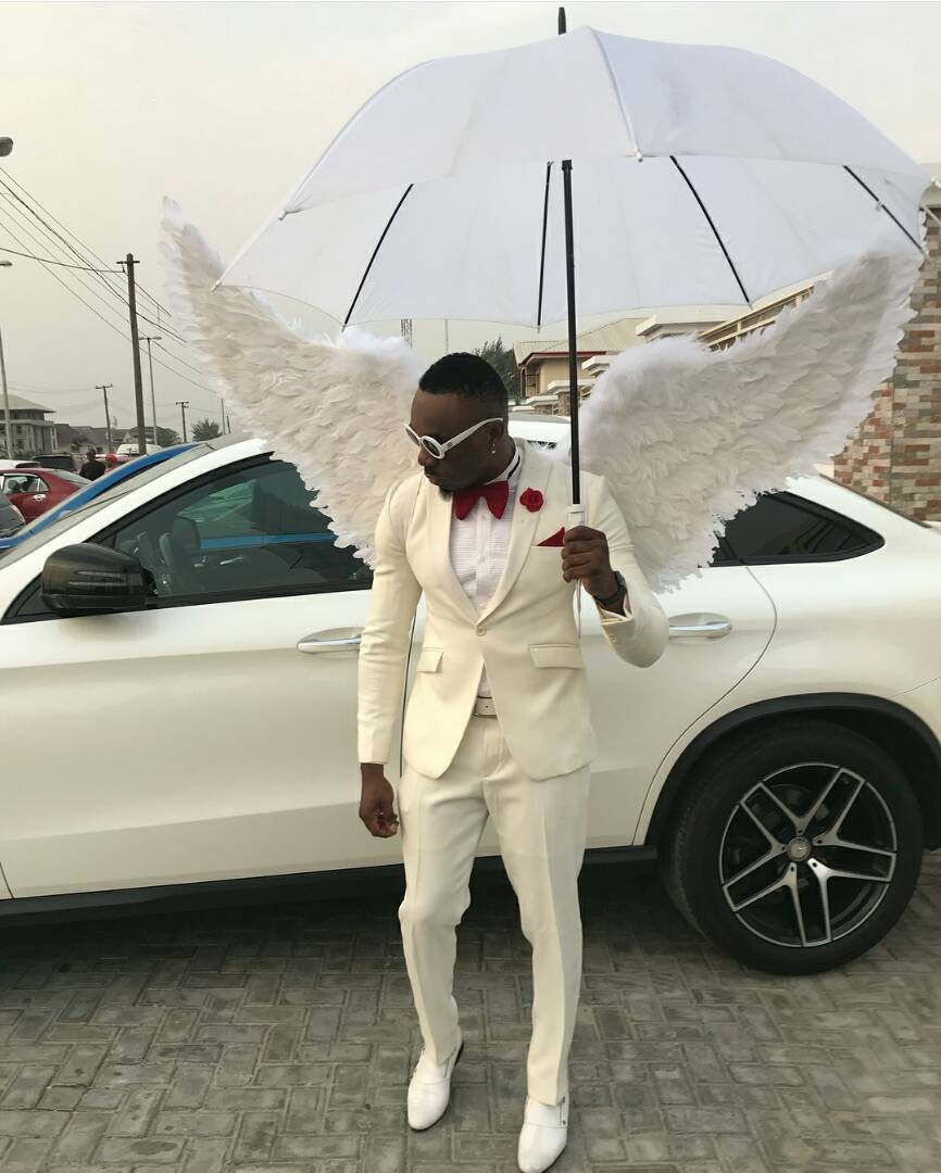 Controversial socialite and businessman recently turned heads and dazzled folks, when he stepped out in an “angelic” look for a wedding in Lagos yesterday.