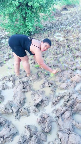 The Pretty Soldier took to social media yesterday evening to share pictures of herself on the farmland.