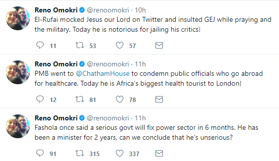 Nigerian author and media critique, Reno Omokri has taken to social media to shade the APC-led administration and to make alleged proof that the Federal Minister of Power, Works and Housing, Babatunde Fashola is not serious.