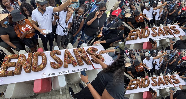 A photo trending online shows the #ENDSARS cake that was also launched at the venue, much to the delight of the protesters.