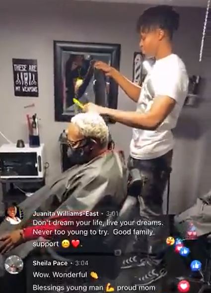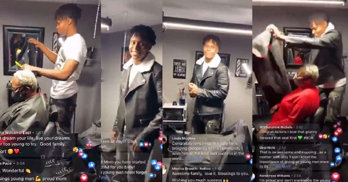 The Black American mother unveiled the barbershop she built for her son in the presence of their friends and family while making a live recording on Instagram.