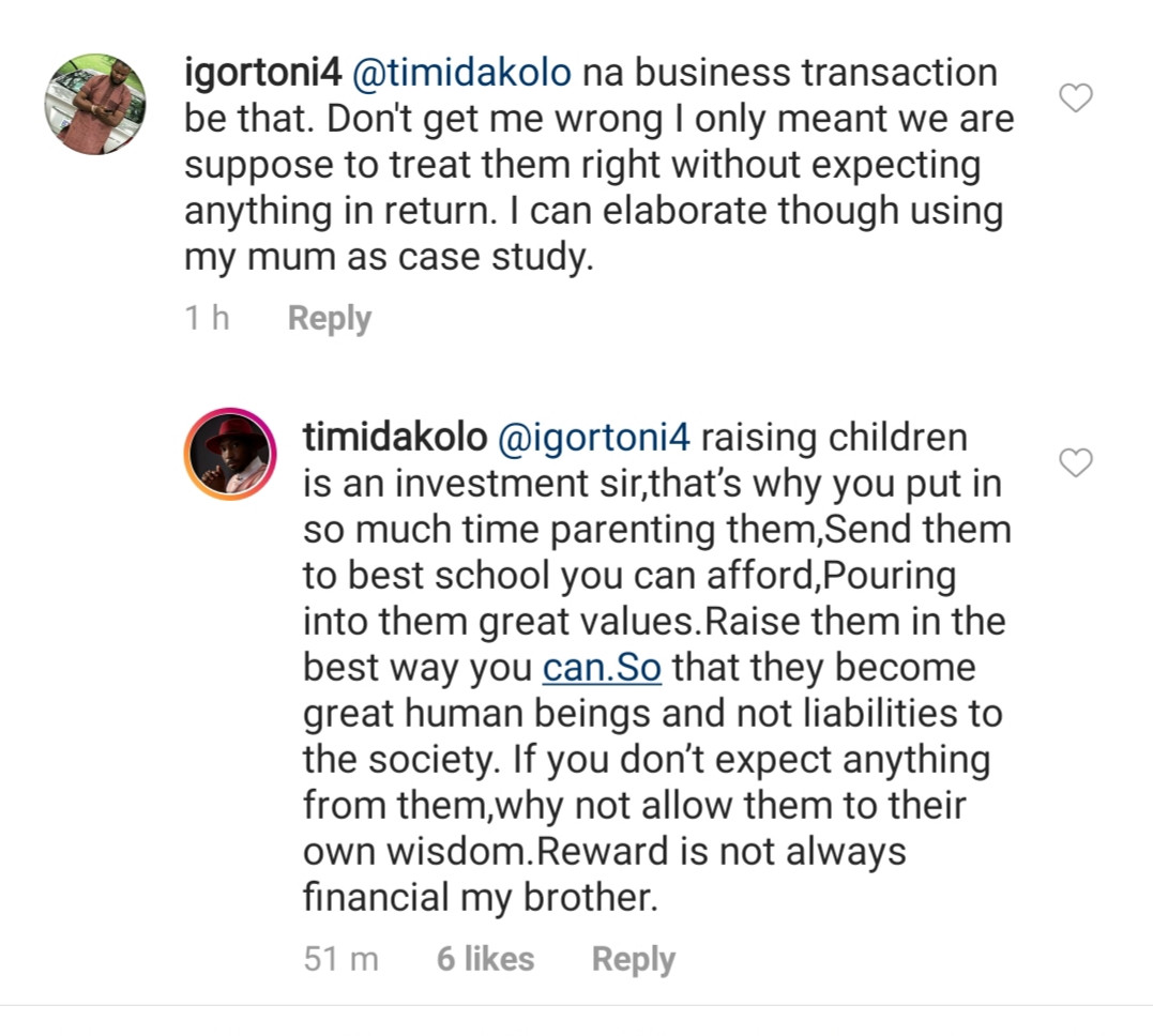 Timi Dakolo is of the opinion that raising a child is an investment and that the reward for doing so is not only financial.