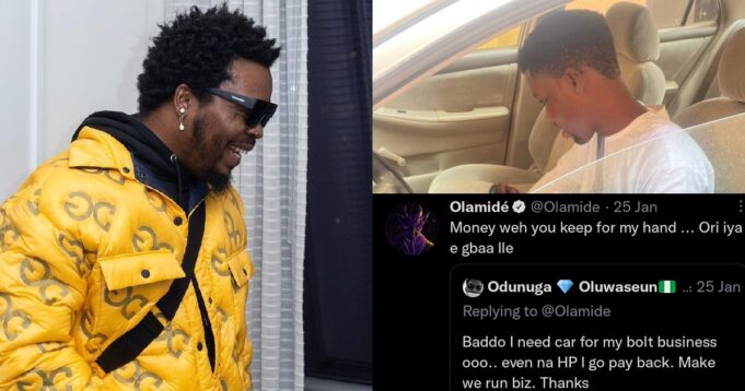 Legendary Nigerian singer, Olamide, has finally granted the wish of a Twitter user whom he had previously chastised when the latter asked for a car a few months ago.