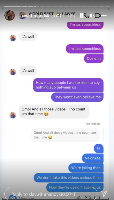 The lady in question, however, has dismissed claims of having an intimate relationship with Cute Abiola. According to Mandy, the loved-up videos were before Cute Abiola got married, and they were just for the cruise.