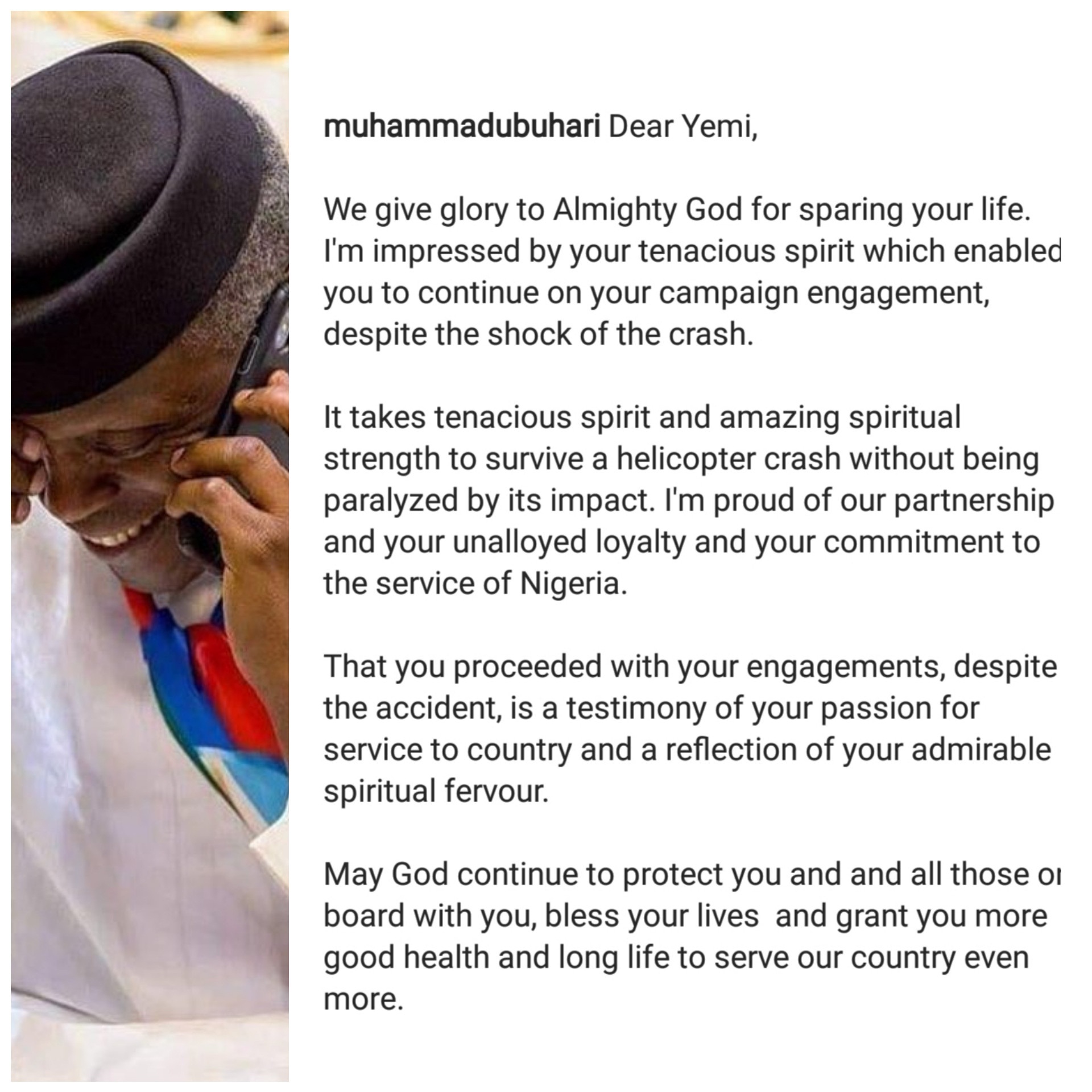 President Buhari penned an Open Letter to express his feelings over what could have been a national tragedy if the worst happened after his Vice, Yemi Osinbajo was involved in a Helicopter Crash in Kogi State.