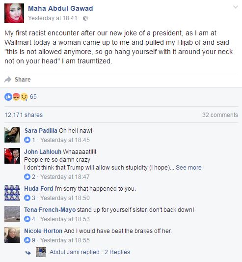 Just yesterday, we reported of a lady who shared her story of how she was harassed by some Caucasians while she was pumping gas… this Muslim lady too has shared hers of how she was harassed whilst shopping.