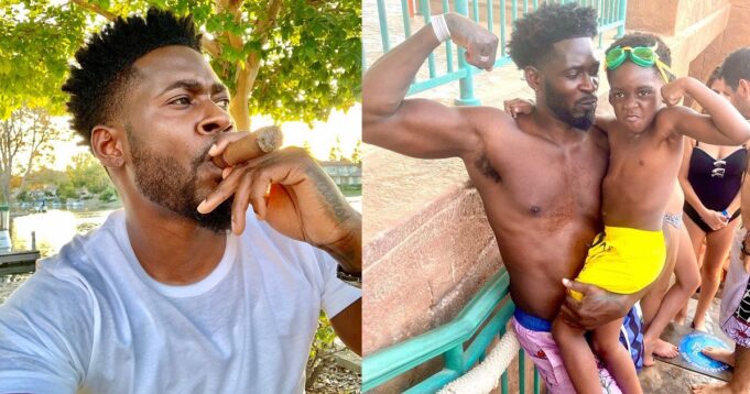 Teebillz had taken to his verified Instagram page, to share a photo of him with his son, Jamil Balogun. In the photos the father had an arm up with a closed fist, a sign to show Jamil his strength.