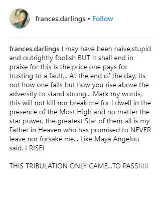 The victim, who goes by the name Frances online, has reacted with a post which seems to confirm the allegations.