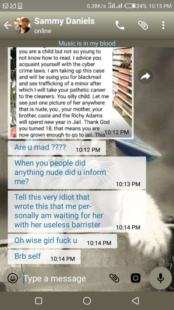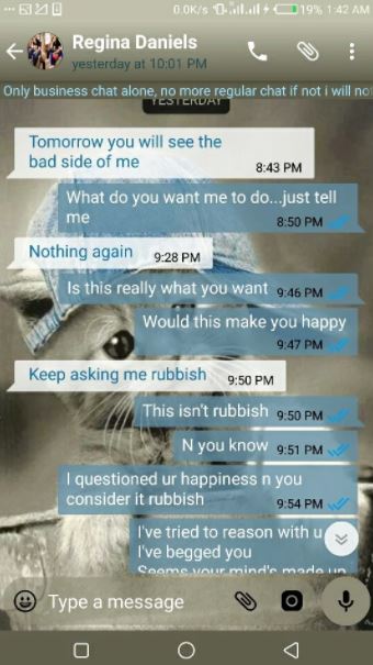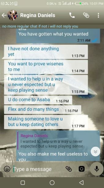 Screenshots of chats with Regina Daniels’ Brother, Sammy;