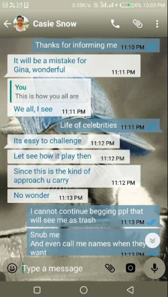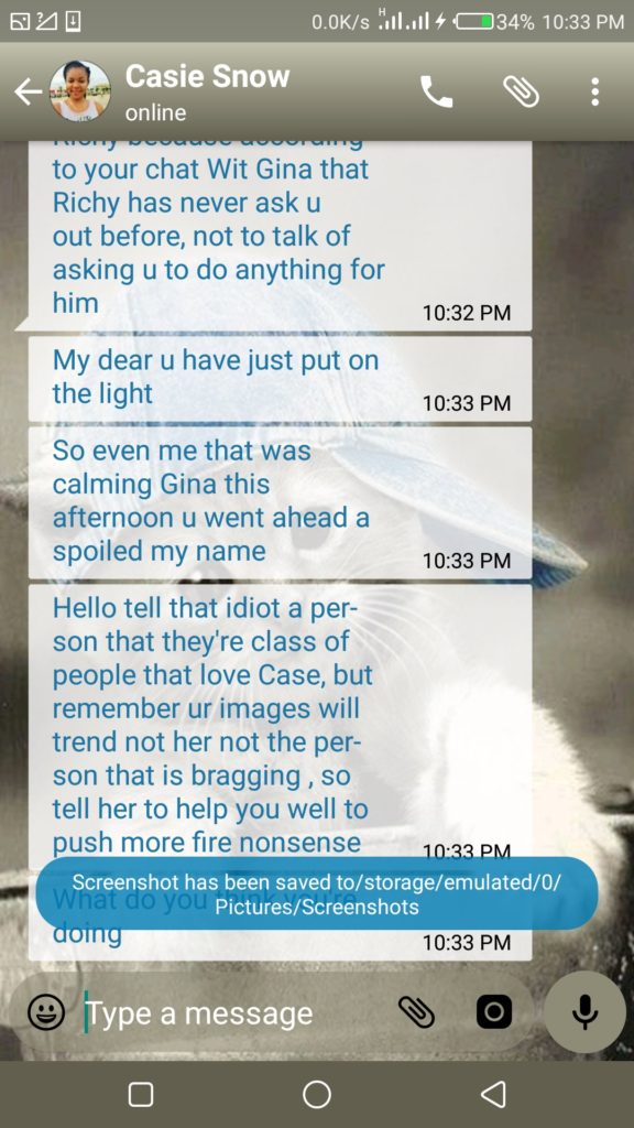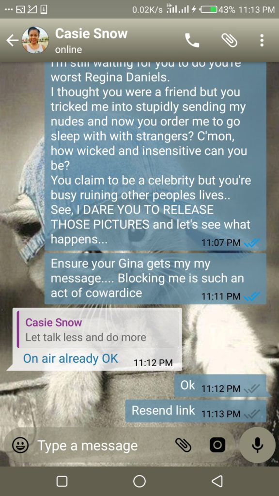 There’s another girl…Casie snow-regina Daniels bestfriend who already told me the pictures are on air already See screenshots below”