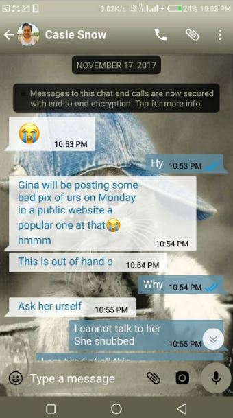 Meanwhile, there is also a blurred screenshot of a semi-nude photo of the victim which Regina allegedly went ahead to share on a particular website.